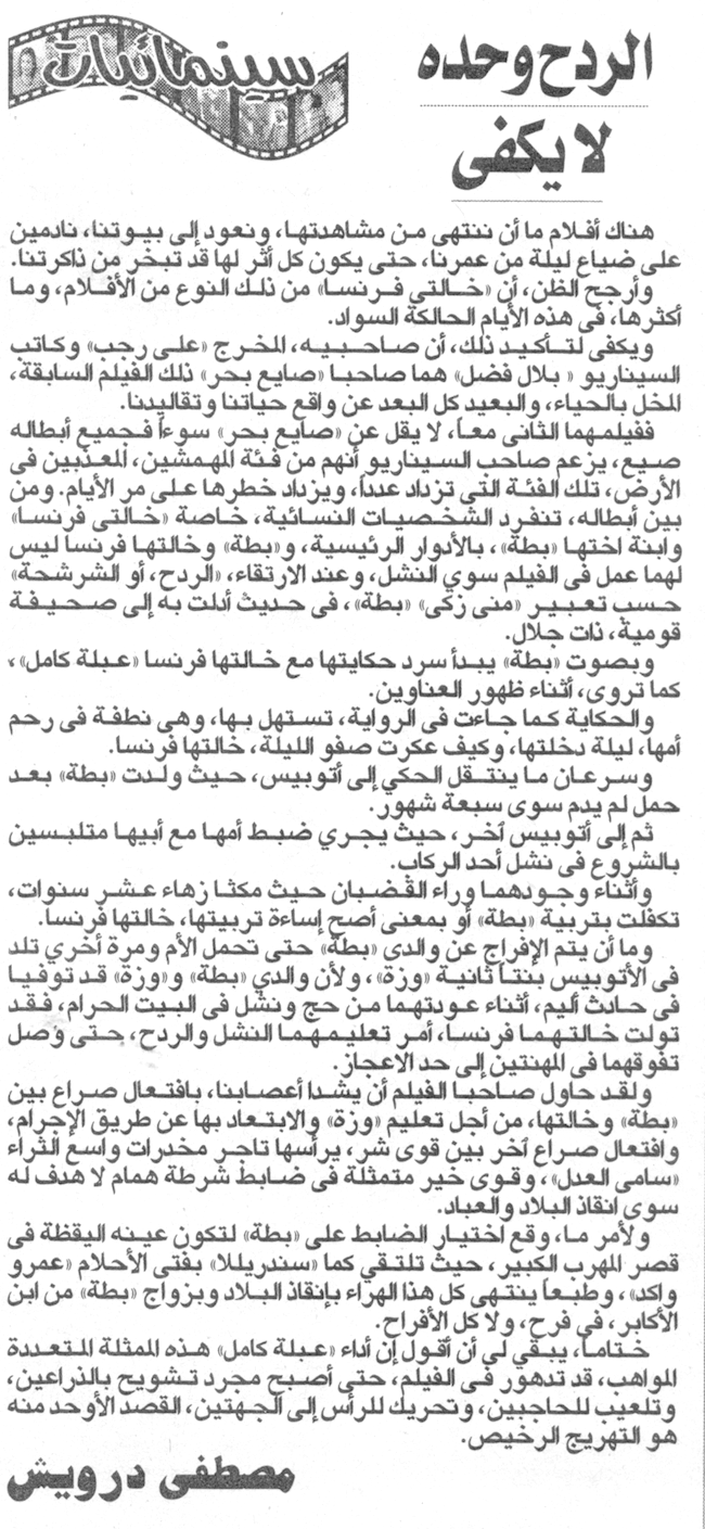 • مقال الناقدة صفاء الليثى المنشور اليوم الاربعاء فى صفحة السينما بالجمهورية 28/06/2017