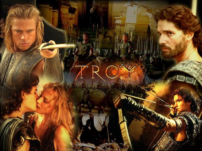 وفيلمه عن طروادة اختزال من مدة حربها من عشرة أعوام إلى عشرة أيام، تدور أثناءها الحرب سجالاً بين الطرواديين بقيادة “هيكتور” ( اريك بنا) ابن برايام ملك طروادة (بيتر اوتول نجم لورنس العرب) وبين اليونانيين يتزعمهم المنشق “أخيل” (براد بيت).