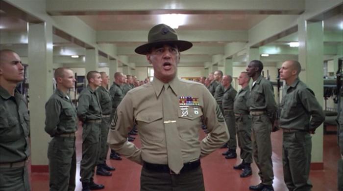 ونصفه الأول مكرس لعملية القضاء نهائياً، وبلا هوادة، على بقايا الانسانية في المجند ابتغاء الانحدار به إلى مجرد آلة صماء، لا تجيد شيئاً سوى القتل.
