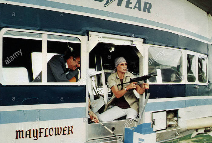 فالإرهابي في فيلم “الأحد الأسود” (1977) عربي يتآمر من أجل قتل المتفرجين، بما فيهم رئيس الولايات المتحدة بواسطة تفجير قنبلة شديدة التدمير في مدرج رياضي وتاجر العبيد “بيتر استينوف” في فيلم “اشافتي” (1979) عربي يختطف زوجة “مايكيل كين” الانجليزي من أجل بيعها لزبونه الثري العربي “عمر الشريف”، وتاجر عبيد آخر في فيلم “الجنة” – وهو بدوره عربي – يطارد فتاة انجليزية في الصحراء، ولا ينقذها من بارثنه سوى صبي شجاع – اسمه بالمناسبة “دافيد” – بأن يصوب إليه سهماً، فيرديه قتيلاً، وملك وقائد ثوري، وكلاهما عربي، يسعيان في فيلم “الخطأ الصحيح” (1987) إلى تفجير قنابل ذرية في كل من نيويورك واسرائيل.
