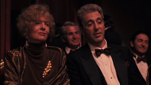 والفيلم يبدأ به، وهو يحاول أن يضفي على استثمارات العائلة طابع الشرعية، حتى يقطع كل صلة بينها وبين عالم الإجرام.